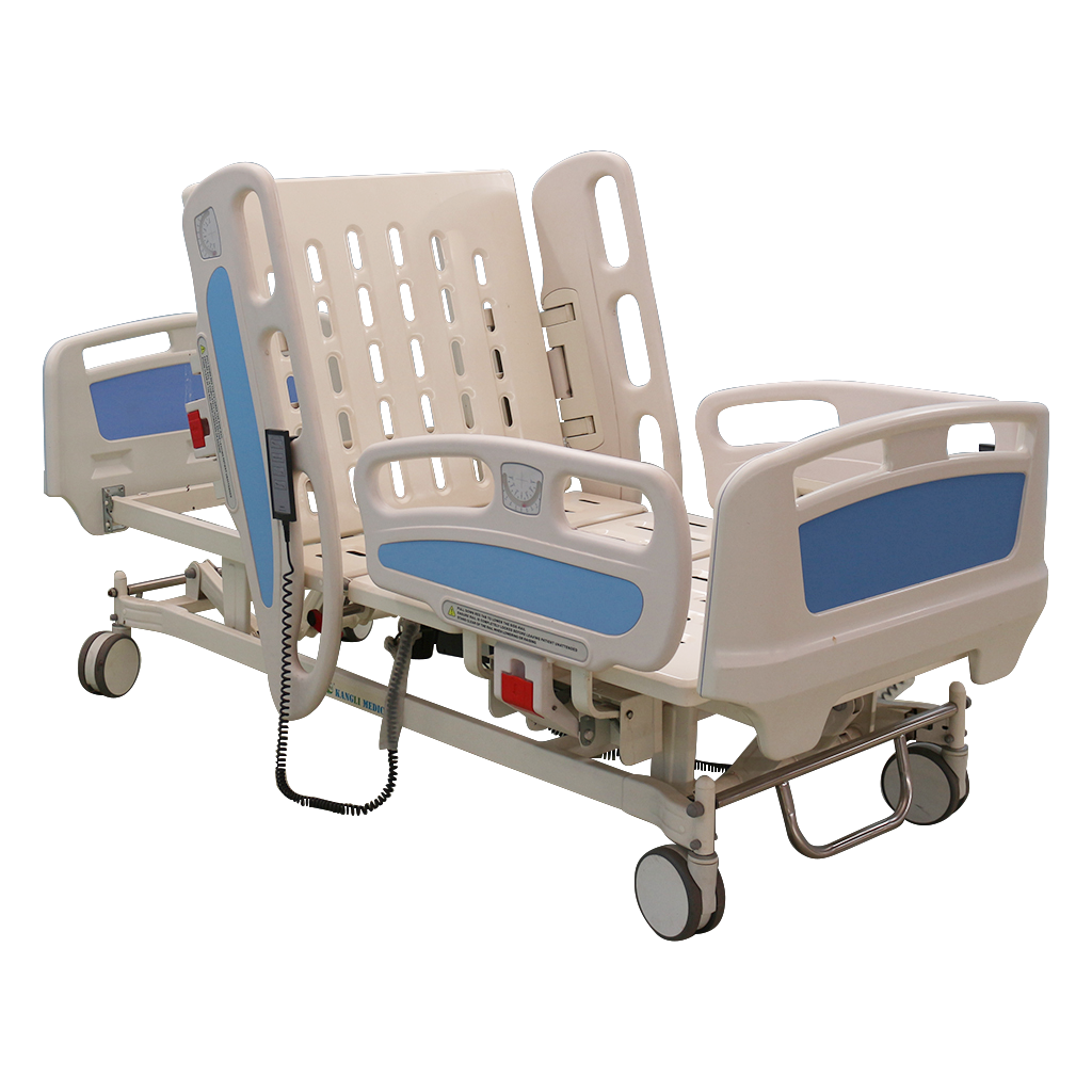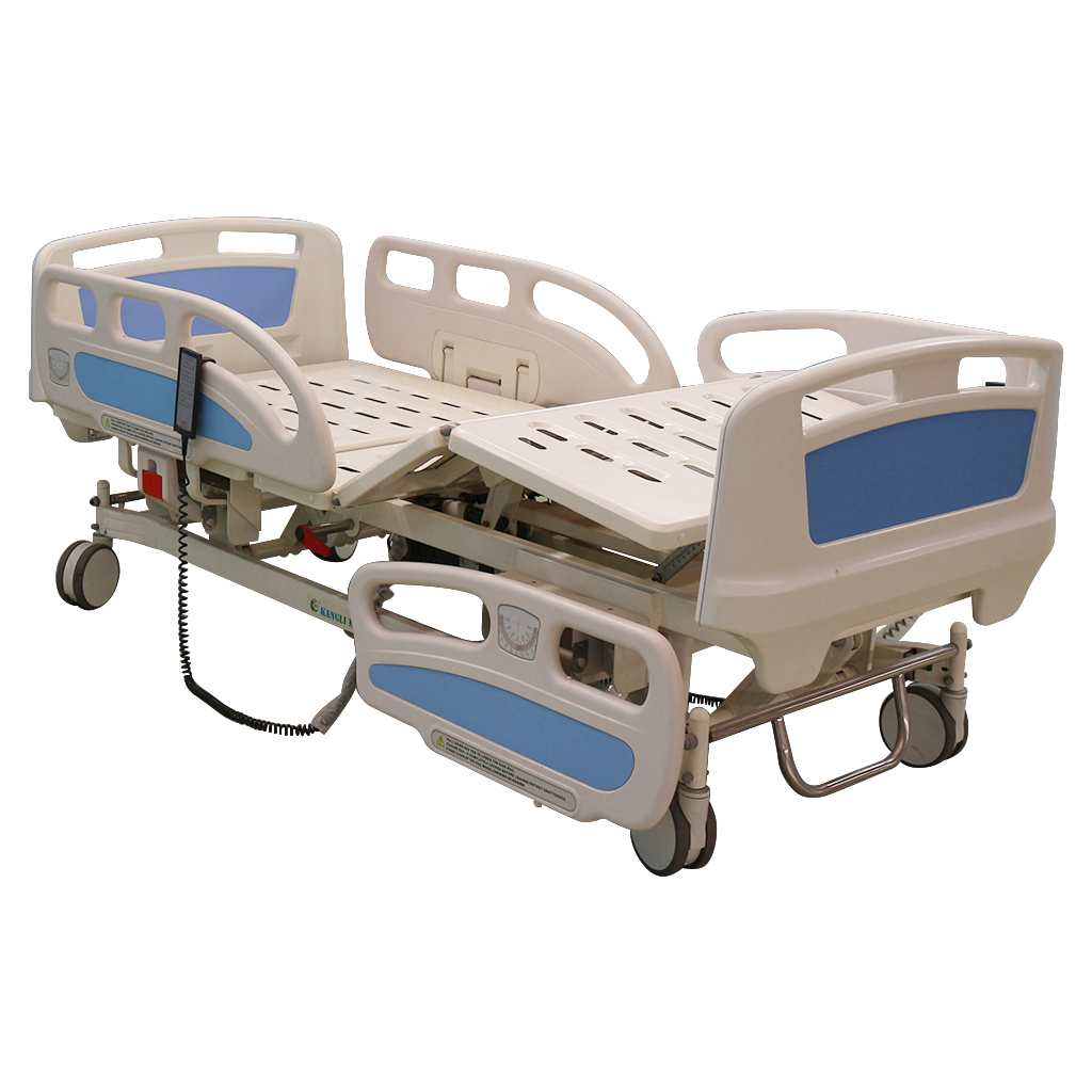 The three-function electric hospital bed for sale features electric motor controls that raise the head, foot, and integrated height of the bed frame with the push of a button on the remote control. This type of bariatric electric medical bed is ideal for use at home, hospitals. This top-rated hospital bed is much convenient for the caregivers or nurse compared with the manual crank system, as the hospital bed controls are electrical. The structure of the electric hospital bed is of either steel or iron frame. In most cases, it is epoxy coated and looks very good also. The detachable headboard and footboard help to manage the bed very easily. There is a metal sheet at the top of the bed to support the mattress. It helps to keep the mattress firm and straight in any condition. The side rails are made from ABS engineering plastic, and they are collapsible also when not needed. The presence of this ABS tuck away side rail is very helpful in the case of patients who have a chance of falling side-wise. Shoe holders are placed at the bottom of the bed and there are four pockets on each side of the bed to keep belongings. As this is a typical hospital bed, hence there is a provision of patient name holder bot at the head and foot part of the bed. 3 function electric medical bed;